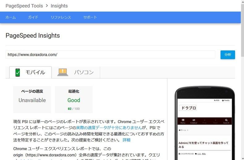 変更後は、モバイルが 82 、PCが 60 といった結果。